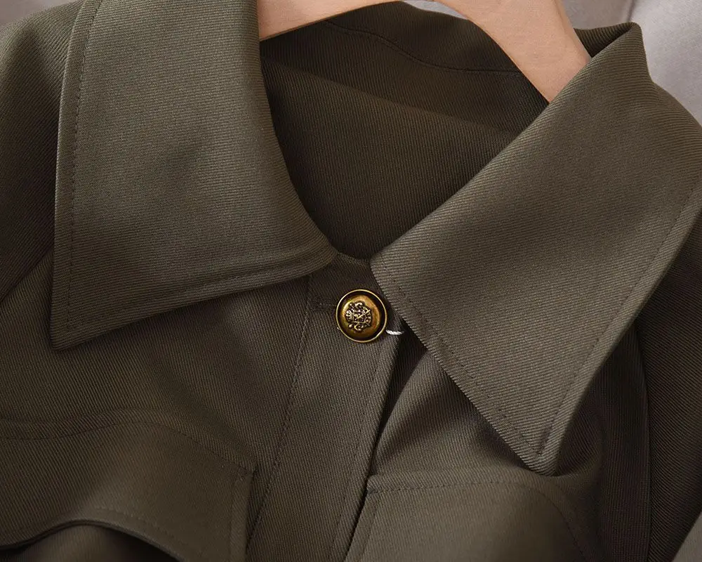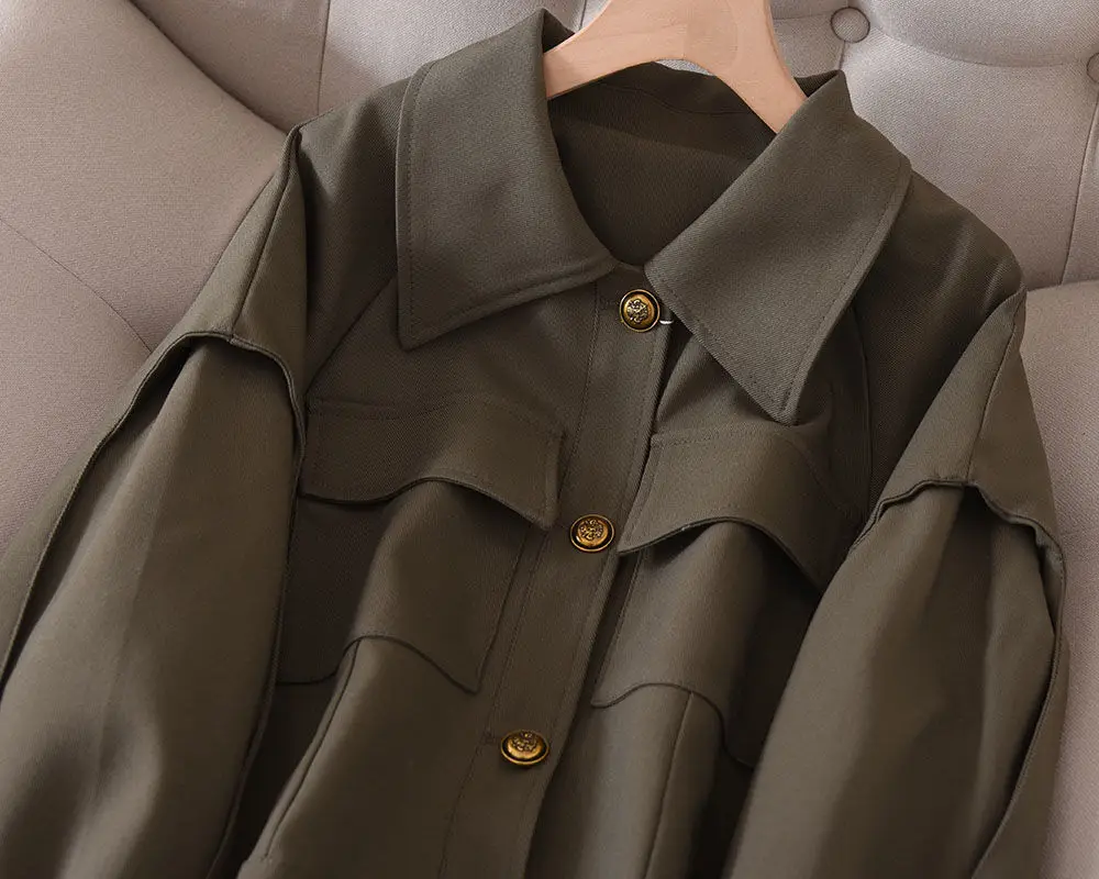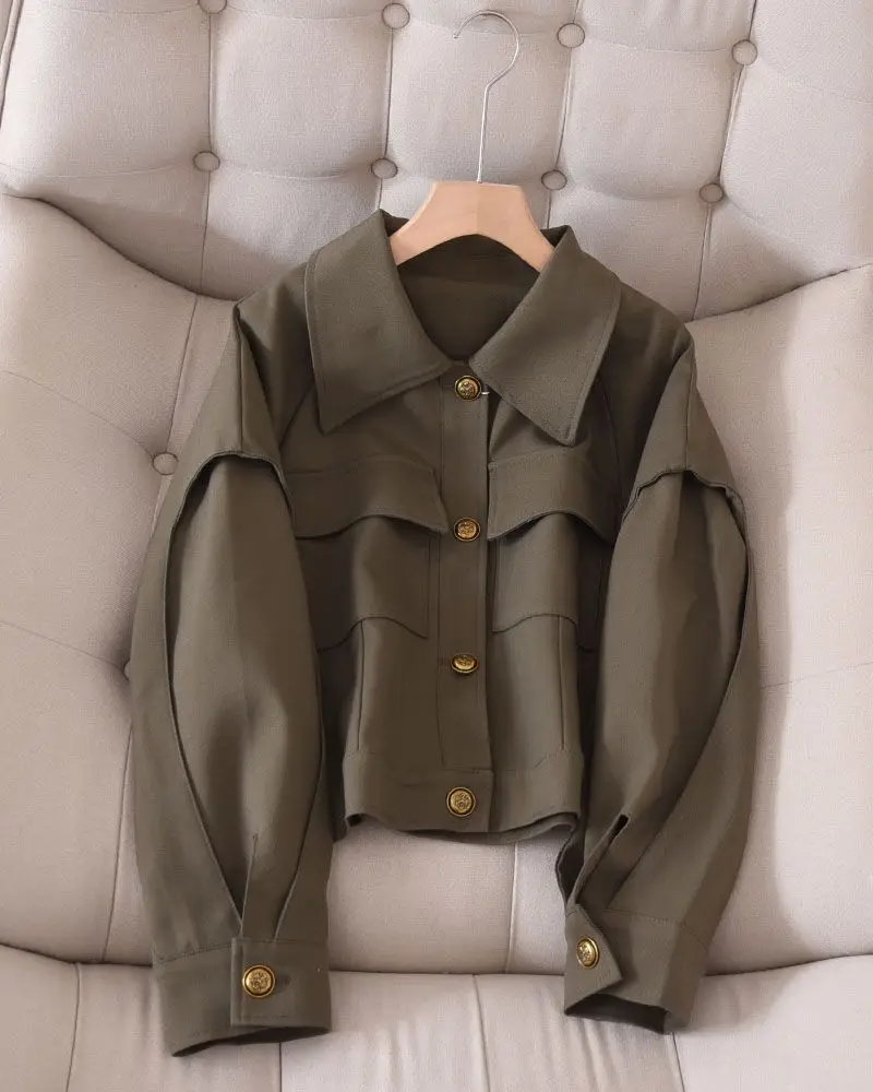 Turndown Collar Long Sleeve Coat Autumn Windbreaker Korean Casual Chic Lady Warm Tops