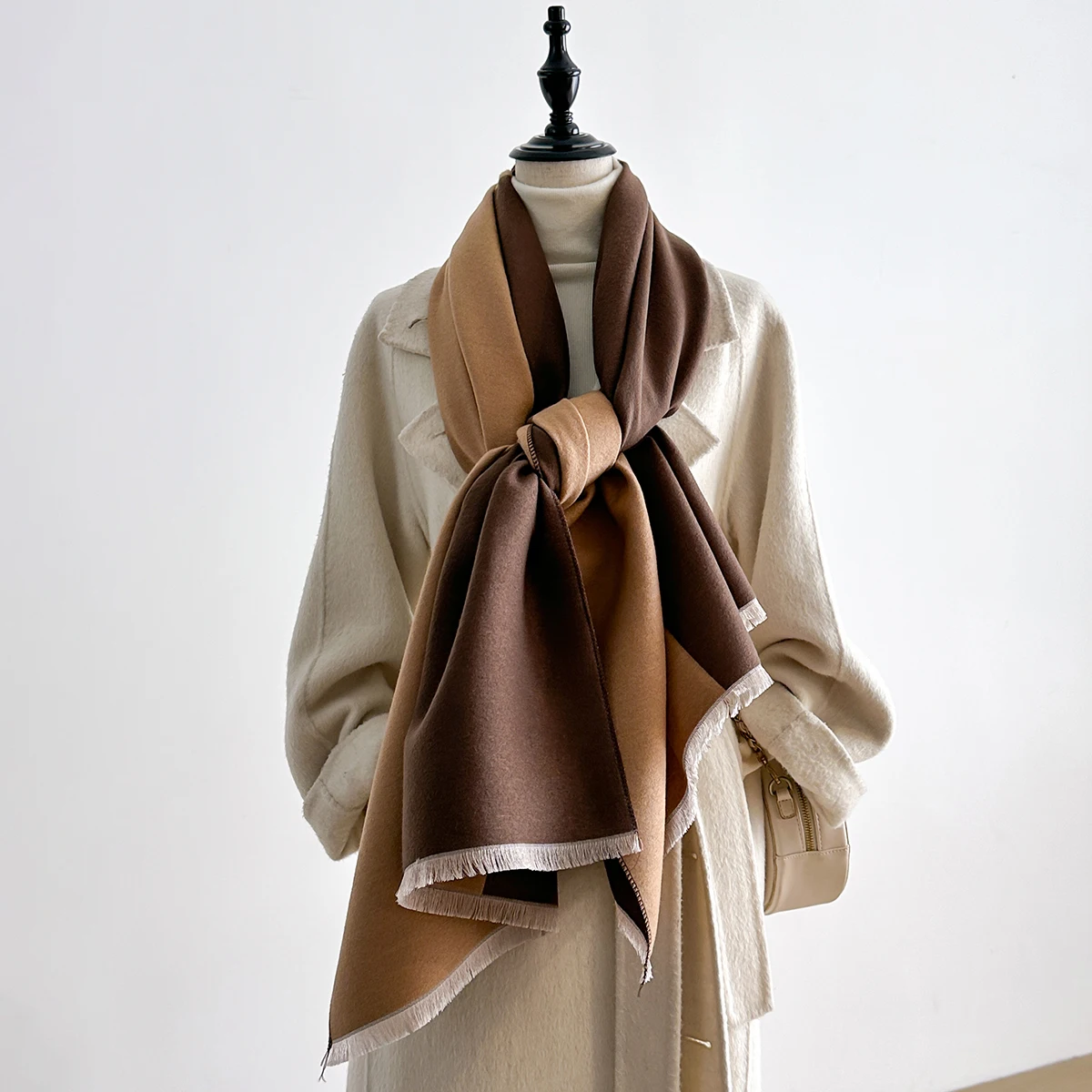 Women's Winter Wool Scarf - Long Warm Cashmere-Like Solid Color Pashmina Shawl, Wrap